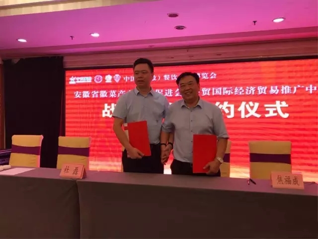 隨后,隆重舉行了安徽省徽菜產(chǎn)業(yè)發(fā)展促進會與中貿(mào)國際會展戰(zhàn)略合作簽約儀式,雙方表達了共同的愿景:傳承與推廣餐飲文化,推動安徽餐飲業(yè)快速發(fā)展,搭建交流與營銷貿(mào)易洽談平臺。將用三年規(guī)劃,五年戰(zhàn)略, 鑄就餐飲行業(yè)風(fēng)向標(biāo)美譽, 將集雙方之全力共同將安徽餐博會辦成一個檔次高、規(guī)模大、有影響力的餐飲行業(yè)盛會。