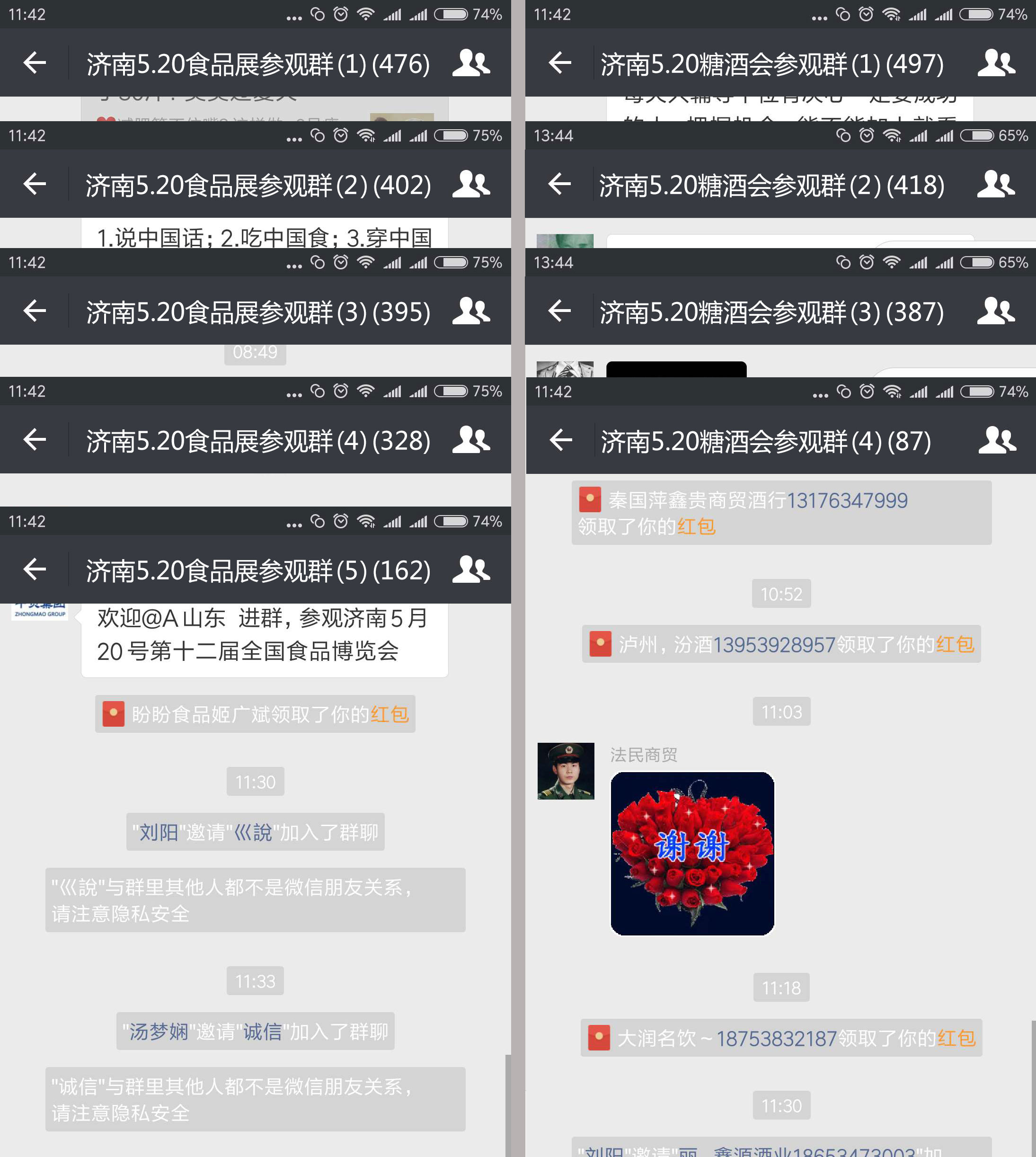 微信群成員覆蓋全國重點城市各大副食品城,經(jīng)銷商,代理商等相關行業(yè),目前已建立多個專業(yè)觀眾微信群,每個群成員接近500人。目前,微信群還在如火如荼的建立當中,相信最后的結(jié)果一定驚為天人。